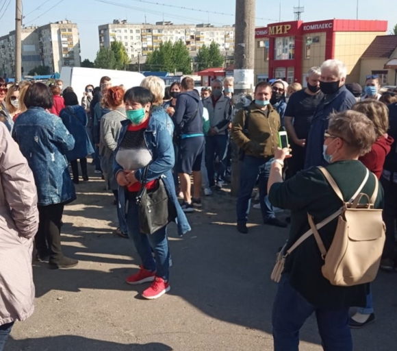 В Лисичанске на митинг вышли десятки предпринимателей непродовольственных товаров. Митингующие перекрыли дорогу.