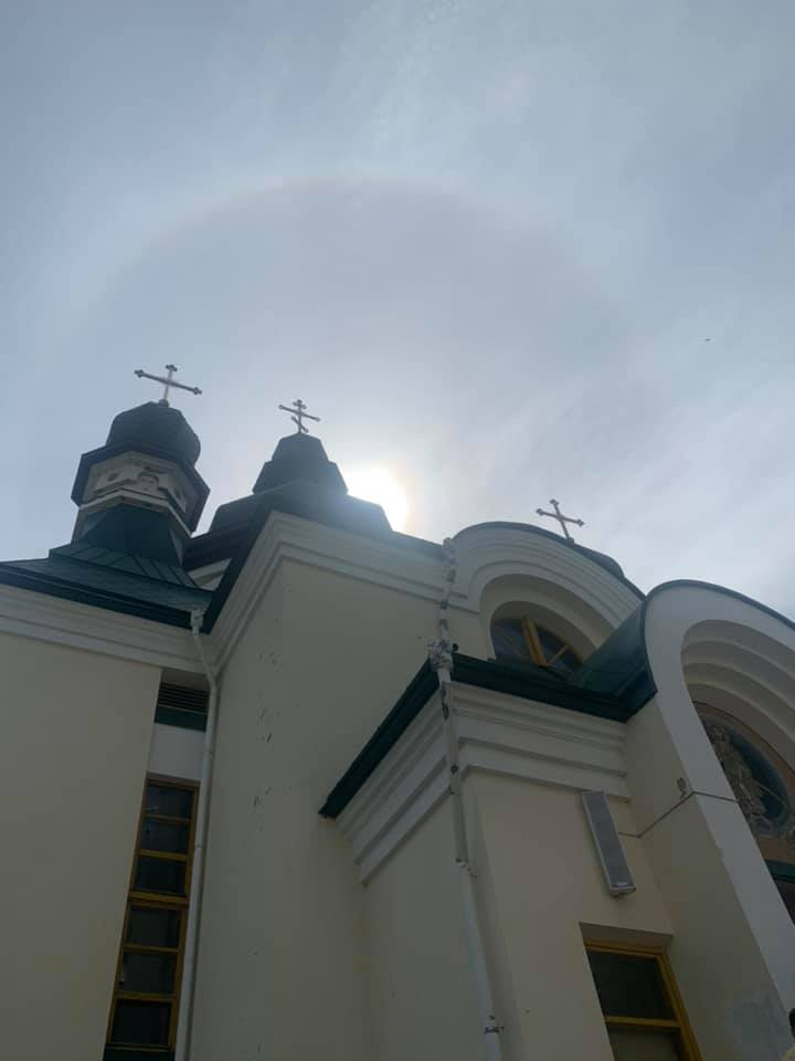 Во время праздничных богослужений в небе можно было увидеть солнечное гало, передает Час Пик.