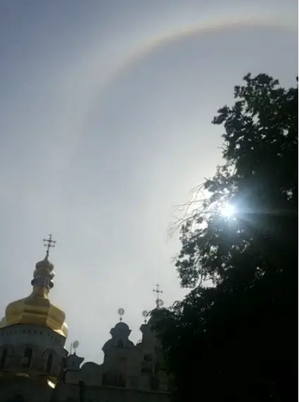 Так, гало засняли во время богослужения над Киево-Печерской лаврой, а также над Свято-Троицким Иоинским монастырем.