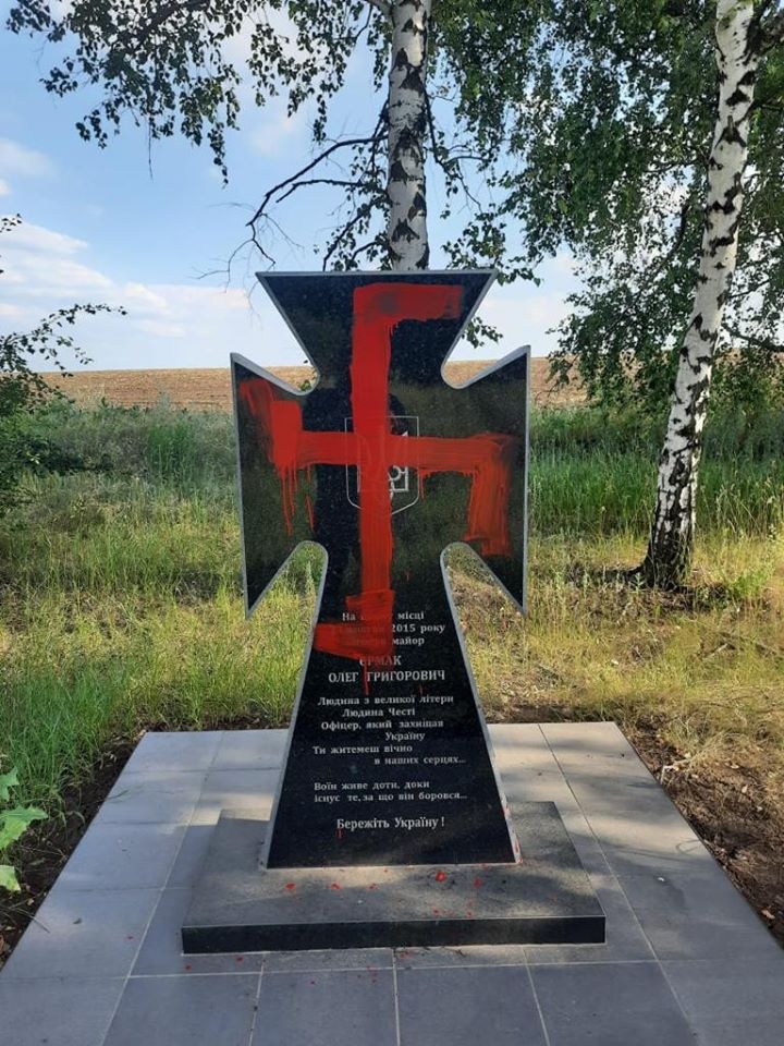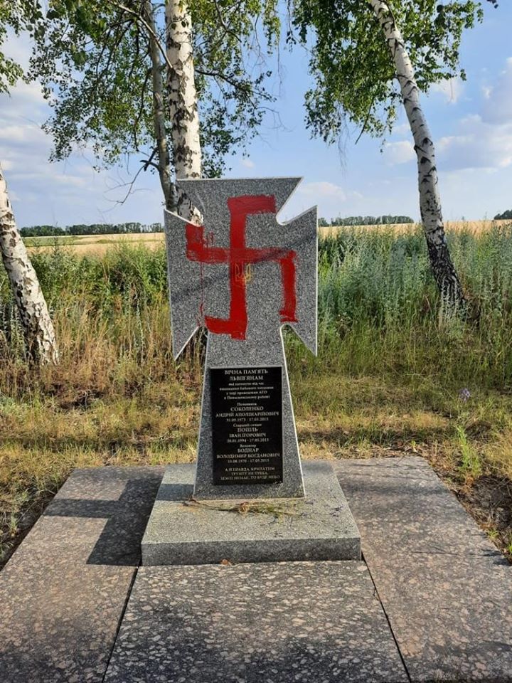 В Попаснянском районе Луганской области вандалы облили краской памятные знаки, установленные в честь военных, погибших при исполнении служебных обязанностей в районе ООС.