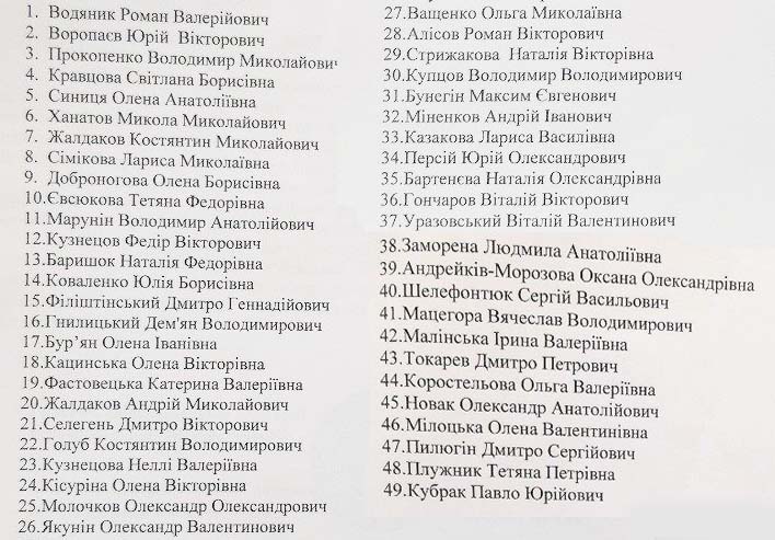 Среди продунаевских кандидатов очень много лисичан и немало депутатов Лисичанского горсовета последнего созыва. Шестеро из них - Эдуард Щеглаков №2 списка, Елена Ратушная - №8, Татьяна Худоба - №10, Евгений Лысенко - №22, Андрей Панаит - №41 и Виталий Деменковец - №51 - весной были отозваны из депутатов по народной инициативе. Еще двое - Юлия Пшебицина (№35) и Дмитрий Карауланов (№46) - прогуляли все сессии за последнии 5 месяцев перед введением ВГА в городе. Также в списке четыре! помощника-консультанта нардепа Дунаева - Александр Овчаренко (№33), Ольга Яцик (№40), Дмитрий Думчий (№ 45) и уже упомянутый Эдуард Щеглаков. Также не обошлось в списке без давних друзей нардепа, которые занимали должность заместителя Лисичанского городского головы по ЖГХ последние лет 10 полностью “убили” коммунальную сферу Лисичанска (Олег Голуб (№16) и Андрей Якимчук (№31). Под №12 в списке одиозный партийный творец избирательных технологий Евгений Байрамов. Он вместе с Валерием Чернышом (№4) и Алексеем Светиковым (№ 38) представляют Северодонецкое крыло списка, а Рубежное выдвинуло сюда Геннадия Минина (№6 ) и Игоря Йоффе (№14).