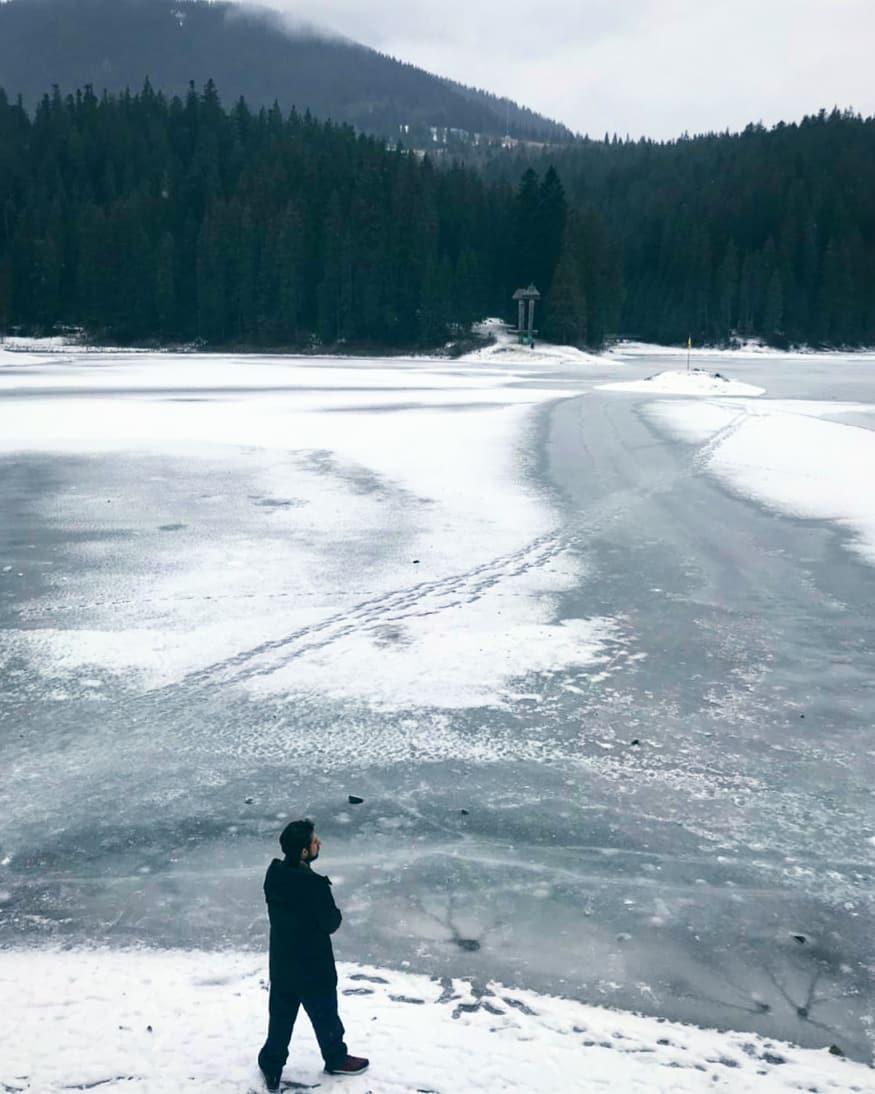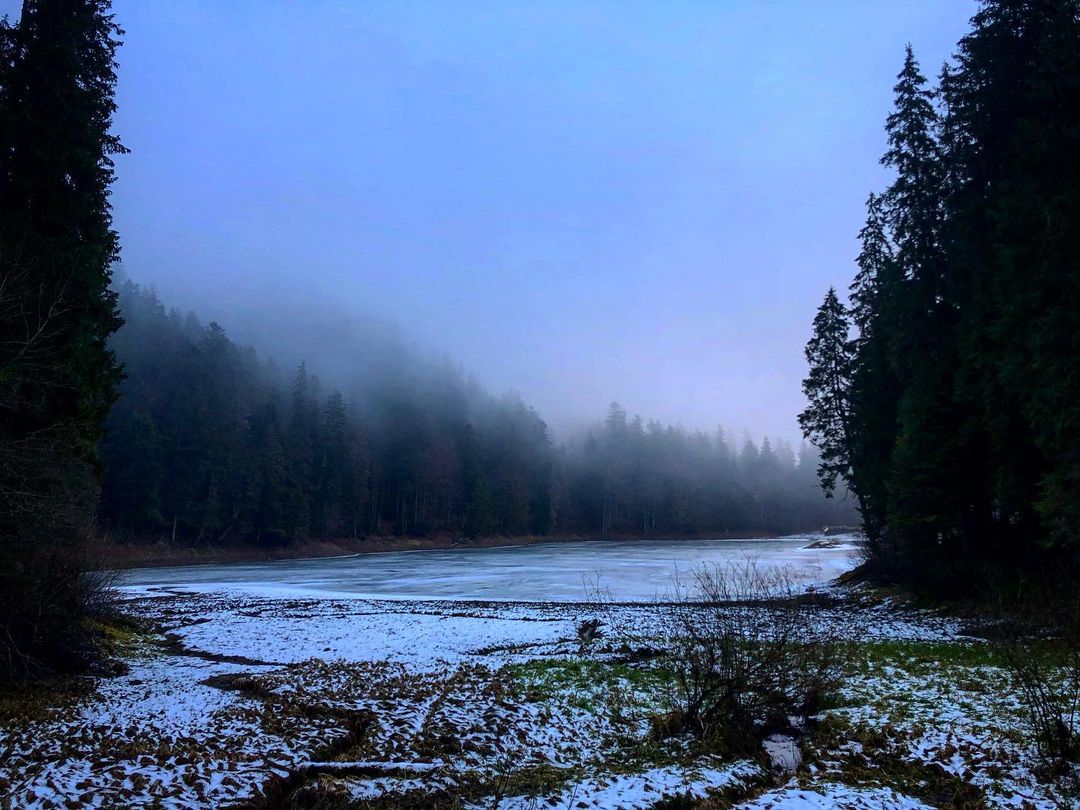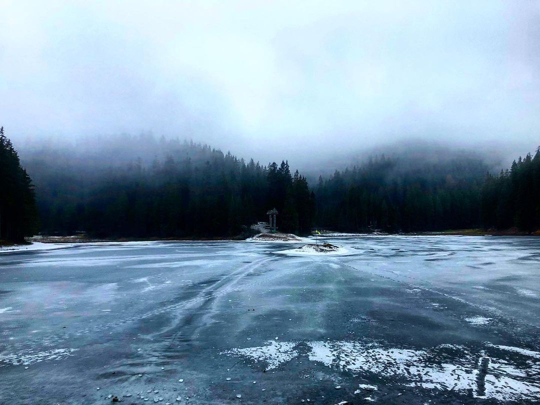 В украинских Карпатах ударили морозы, и крупнейшее горное озеро страны - Синевир - полностью замерзло.