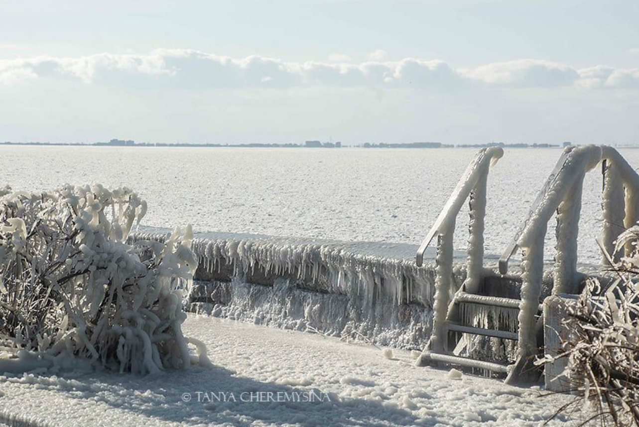 Длительная минусовая температура привела к тому, что Азовское море в Запорожской области покрылось льдом.