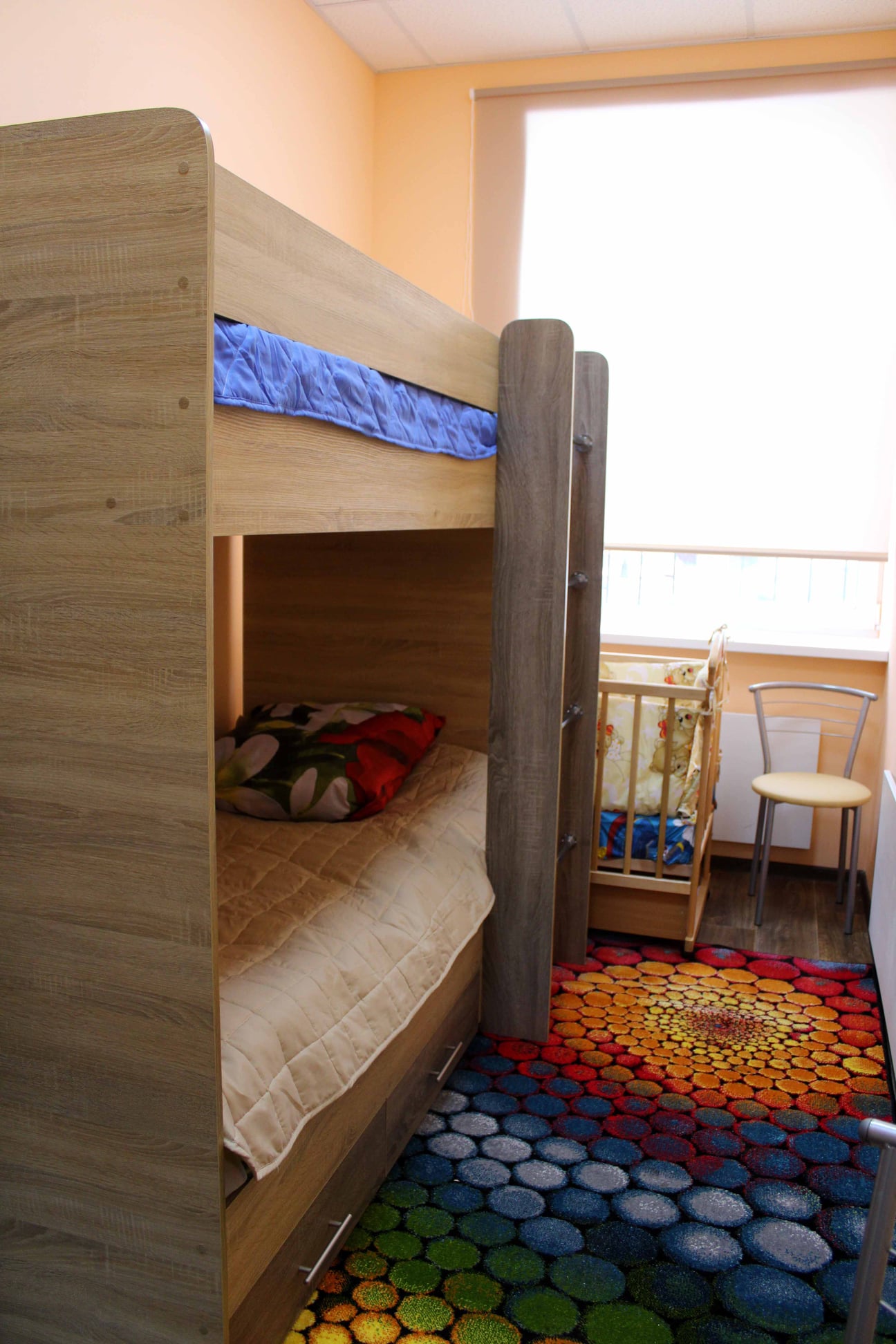 Центр рассчитан на десять человек. Он содержит три жилые комнаты, кухню, санузел, комнату для отдыха и детский игровой уголок.