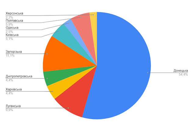 При этом больше всего таких граждан размещено в Луганской, Харьковской, Днепропетровской, Донецкой, Запорожской, Одесской и Полтавской областях.