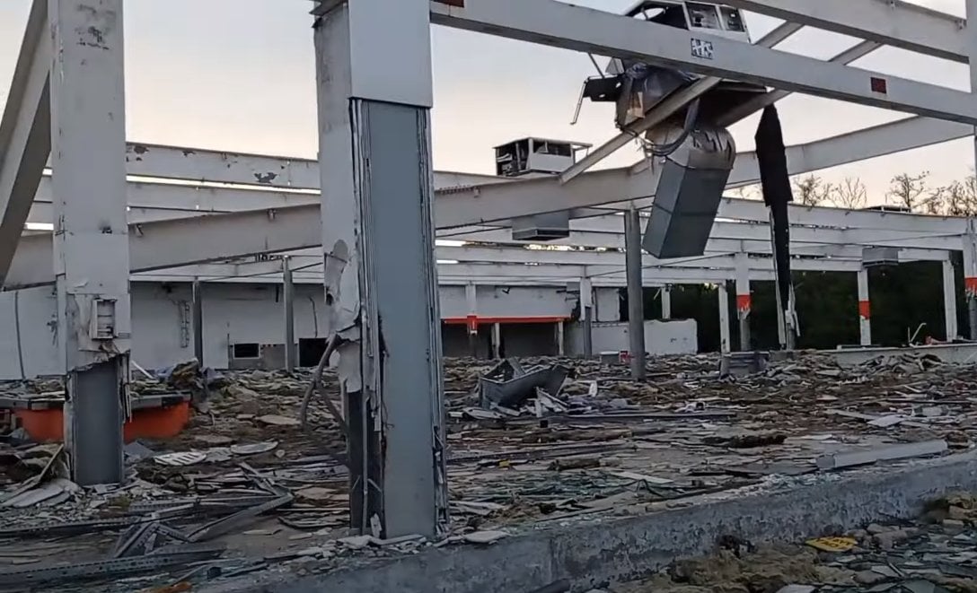Во временно оккупированной Горловке от бывшего супермаркета "Амстор" остался только каркас.