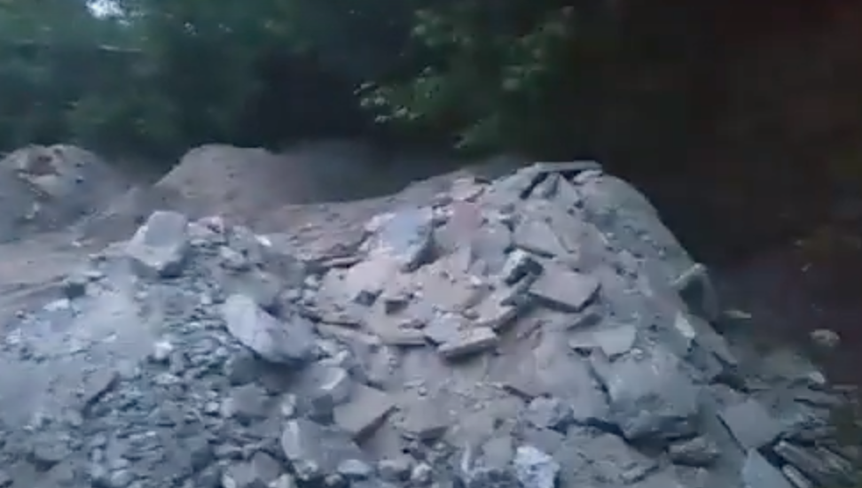 Ранее этой груды бетона возле террикона не было. Судя по следам, обломки свозили к указанному месту на грузовом автомобиле.