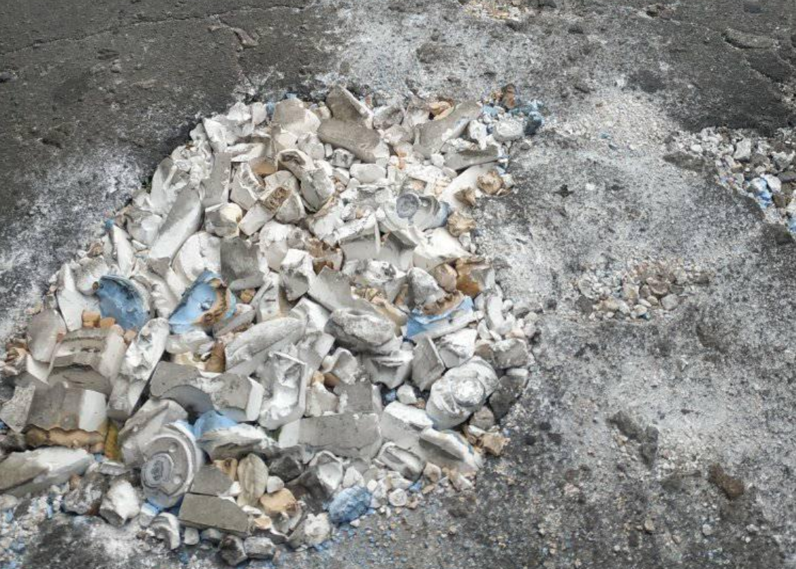 Жителей Северодонецка удивил способ "ремонта" дороги в одном из районов города: яму засыпали стоматологическими гипсовыми слепками.