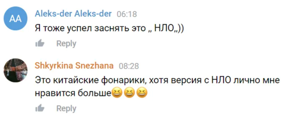 Предположений на счет природы НЛО много. В частности, есть мнение, что это всего лишь китайские фонарики, поэтому удивляться нечему. Но некоторые хотят верить в более "романтическую" версию.