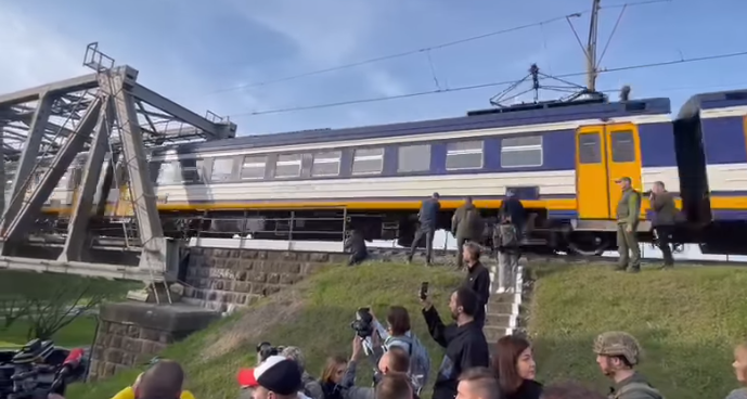 С освобожденным городом Ирпень снова есть железнодорожное сообщение: сегодня по восстановленному мосту поехала первая за несколько недель электричка из Киева.
