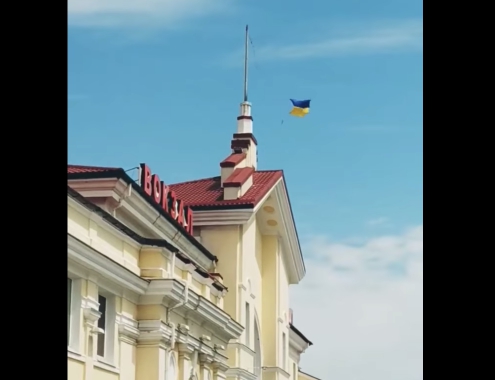 Над зданием железнодорожного вокзала в Херсоне был вывешен флаг Украины. Соответствующее видео появилось в сети.