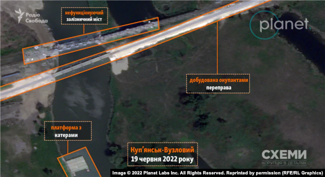 На снимках, которые есть в распоряжении журналистов "Схем", зафиксирована достроенная переправа рядом с разрушенным железнодорожным мостом, передает Час Пик.