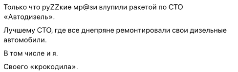 Сегодня, 28 июня, российские войска осуществили ракетный обстрел Днепра. Ракета попала по СТО "Автодизель". Под завалами находятся люди.