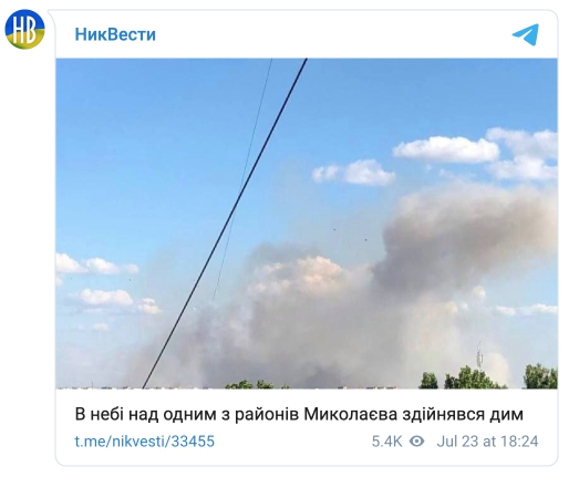 В субботу, 23 июля, в Николаеве прогремело несколько взрывов. В момент взрывов в городе была объявлена воздушная тревога.