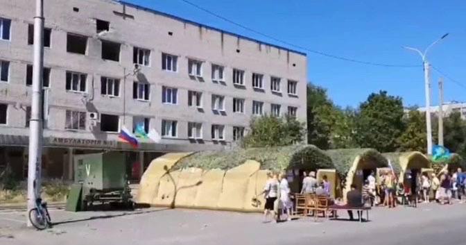 "После грязных "помывочных", оккупационные власти решили людей подлечить и возле поврежденного здания больницы установили палатку, где росврачи ведут прием. Ни оборудования, ни медикаментов, только "денег нет, но вы держитесь", - написал Гайдай.