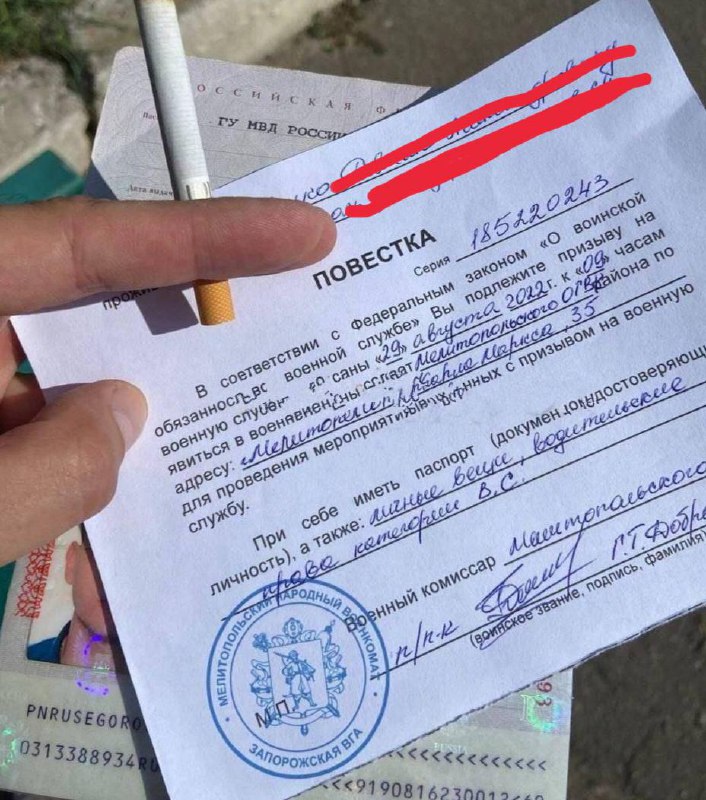 Жители временно оккупированного Мелитополя Запорожской области начали получать повестки от местного "военкомата".