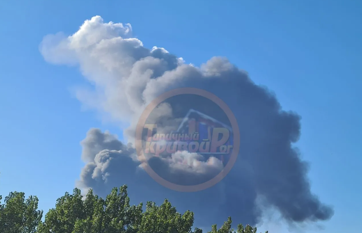 В Telegram-каналах появились первые кадры последствий "прилетов". Видно, что в Кривом Роге в небо поднимается столб дыма.