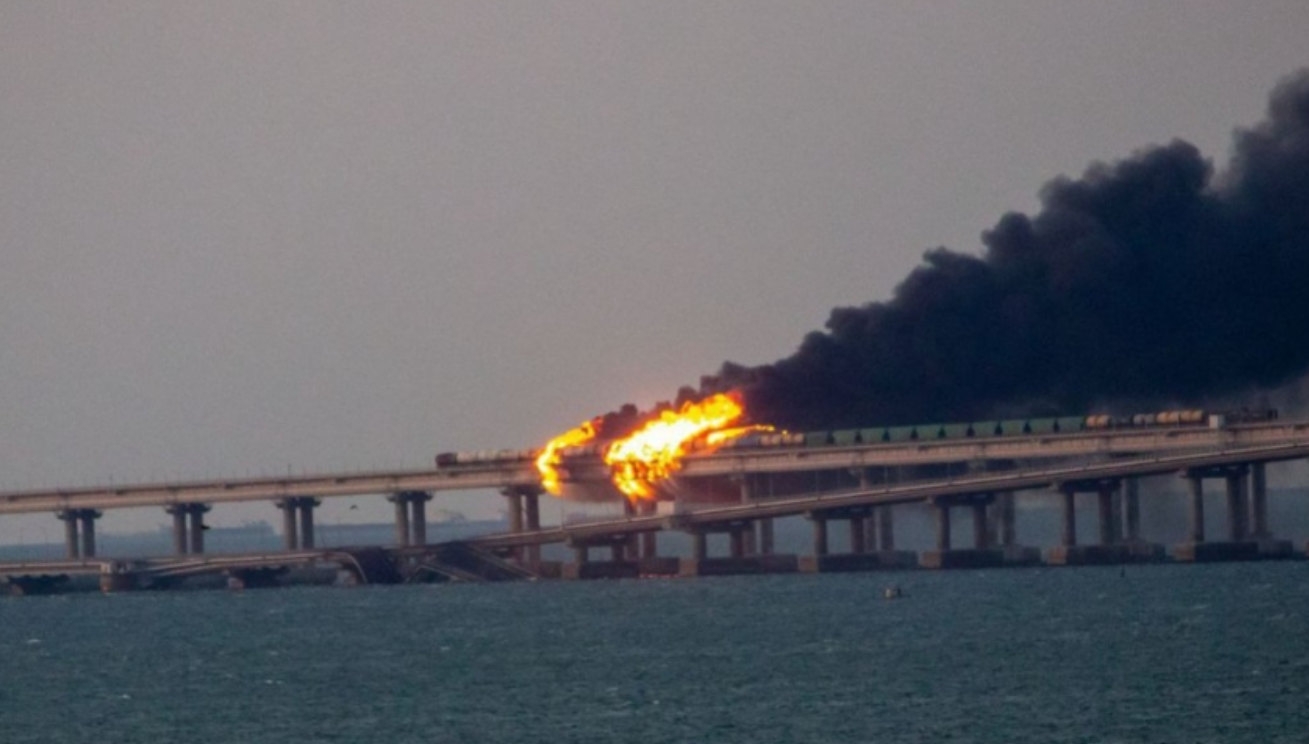 Информация о пожаре на Крымском мосту начала поступать около 06:00 8 октября. Российские СМИ, ссылаясь на "власти" Крыма сообщают, что горит цистерна с топливом, но судоходные арки не повреждены, передает Час Пик.