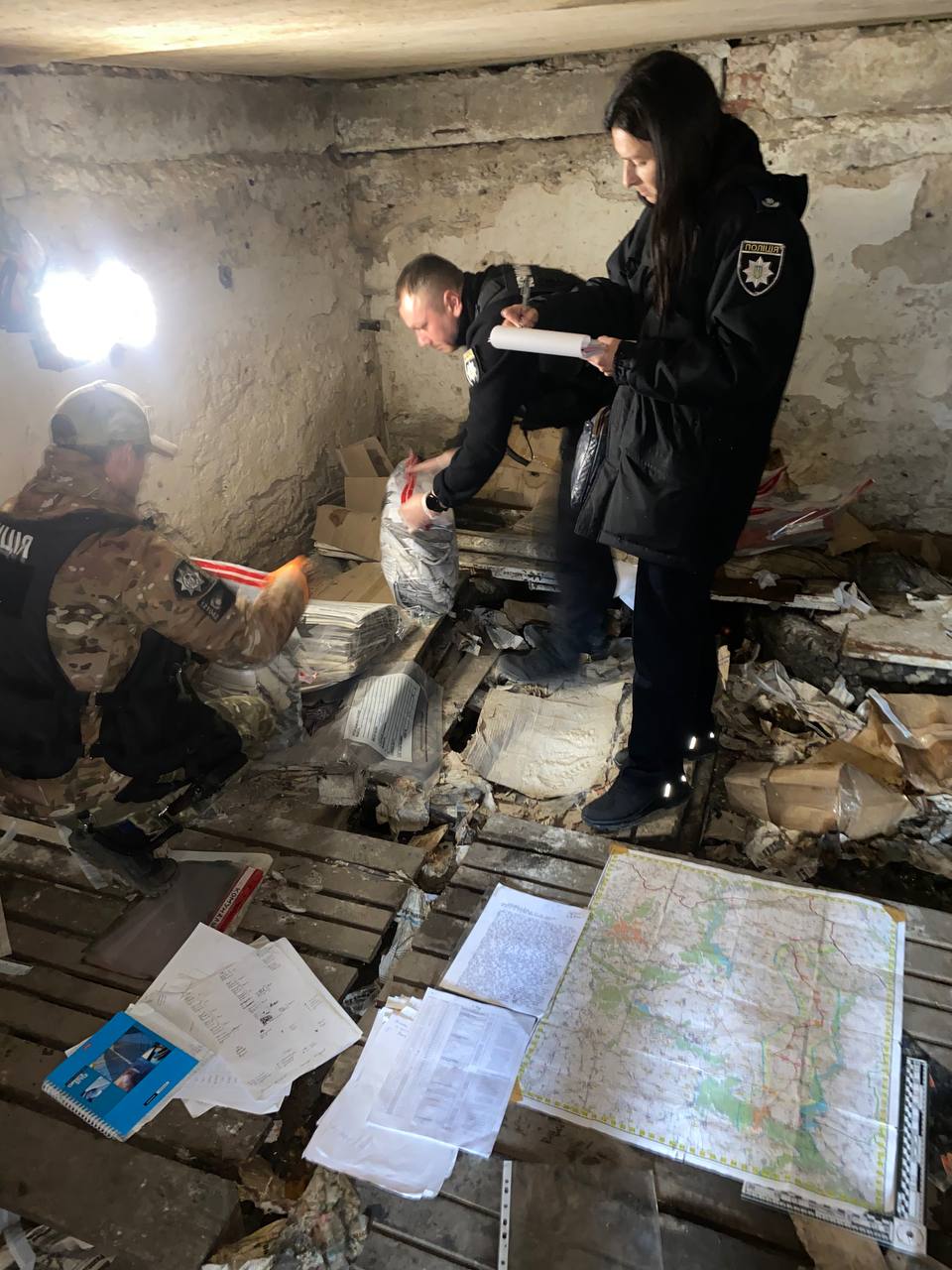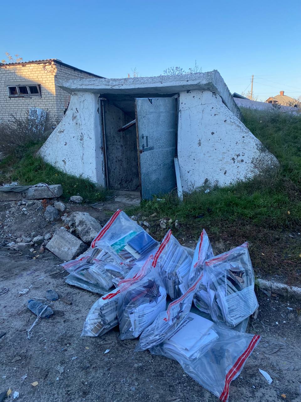 Обнаружили «находку» на территории лицея в Изюме в подвальном помещении. Полицейские изъяли 13 мешков с документами.