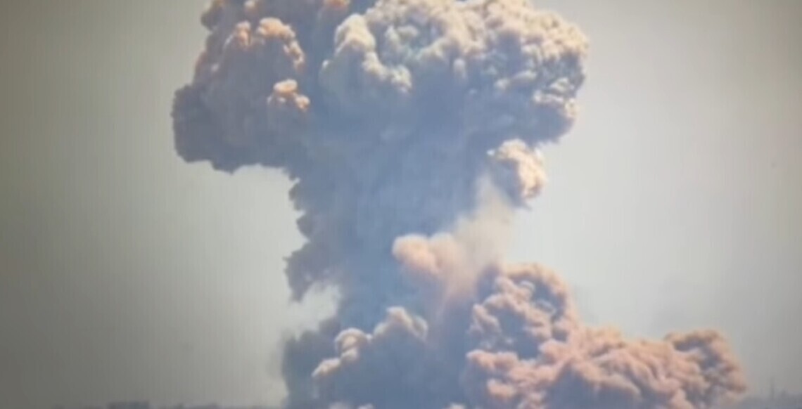 Предварительно известно о попадании в состав с боекомплектом россиян. В месте "прилета" начался пожар. Над поселком видны огромные клубы черного дыма, слышна детонация.