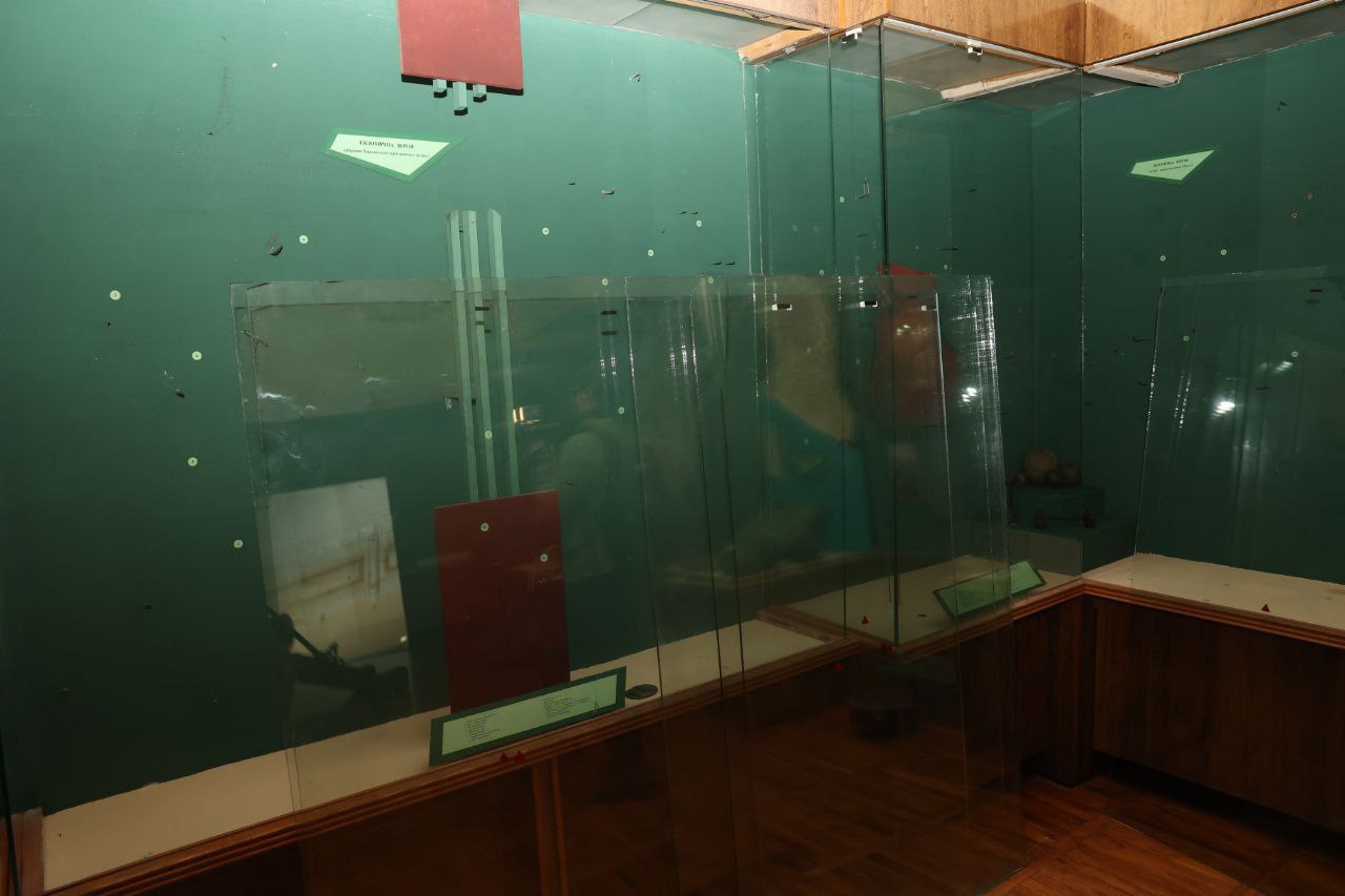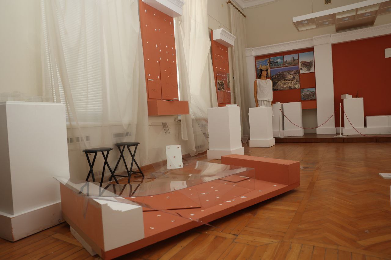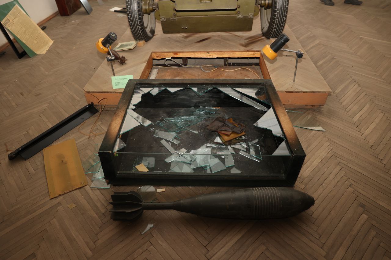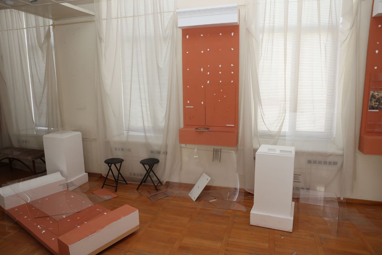Захватчики перед бегством из города похитили из музея все ценные экспонаты, которые можно было быстро унести вручную. Абсолютно все витрины разбиты.