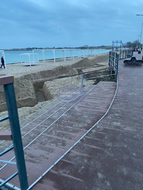 Во временно оккупированном Крыму на пляжах появились глубокие траншеи вдоль берега.