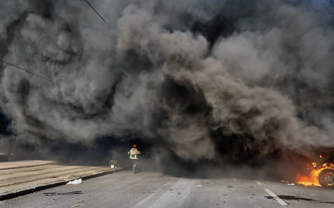 "Повторный удар по тому же квадрату, где пожар", - говорит автор видео.