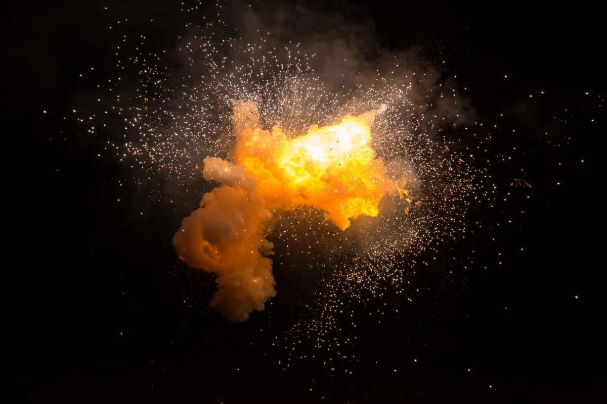 На кадрах, которые сняли очевидцы, сначала послышался гул в небе. Потом слышен взрыв и видно зарево в темном небе.