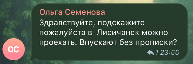 На вопрос о том, можно ли въехать в Лисичанск без местной регистрации, один из пользователей сети делится опытом своего родственника, который недавно побывал в городе. По его словам, въехать в Лисичанск, если человек не зарегистрирован (по народному - не прописан), невозможно - не пропустят.