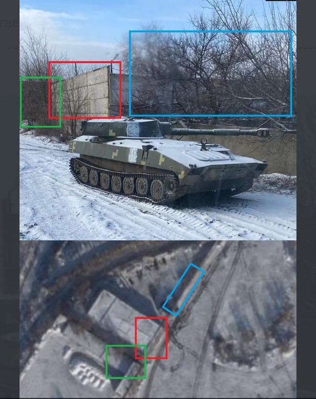 Журналисты, благодаря изучению спутниковых снимкой выяснили, что фото с украинской САУ "Гвоздика" было сделано в южной части шахты.