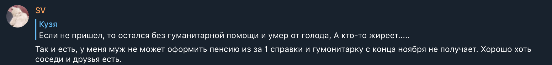 Ввиду отсутствия интернета и стабильной мобильной связи, люди даже пожаловаться не могут на текущее положение вещей. Впрочем, останавливает не только это. Местные жители боятся последствий за то, что кому-то расскажут правду. В сети намекают, что некоторые уже ощутили последствия за то, что жаловались.