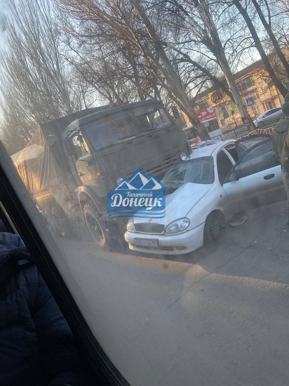 Так, и в оккупированном Донецке, россияне въехали в легковой автомобиль, припаркованный у обочины.