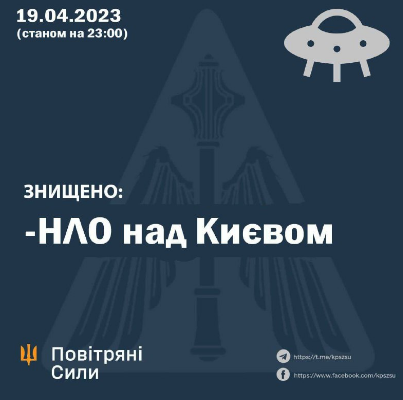 "Около 22:00 часов 19 апреля в пределах Киева в небе наблюдалось яркое свечение воздушного объекта. По предварительной информации, это явление стало результатом падения на Землю космического спутника NASA. Чтобы избежать жертв от падений на землю обломков - была объявлена воздушная тревога. ПВО не работала",- написал начальник КГВА Сергей Попко.