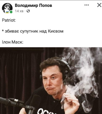 Кроме того, в соцсетях шутят о том, что украинские военные умудрились с помощью американской системы ПВО Patriot поразить вражеский спутник или случайно попасть в один из Starlink Илона Маска, который в последнее время делал неоднозначные заявления относительно Украины.