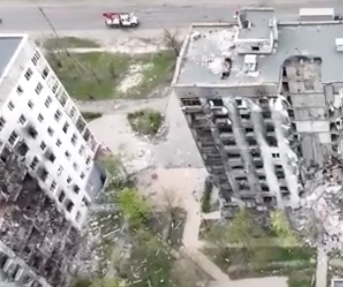 С высоты становится очевидным, что в Северодонецке очень много домов, которые получили повреждения в результате боевых действий. На кадрах трудно найти хоть один полностью целый дом, без следов войны.
