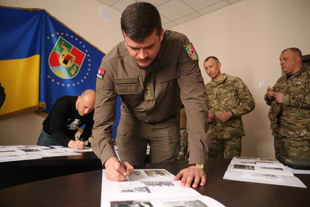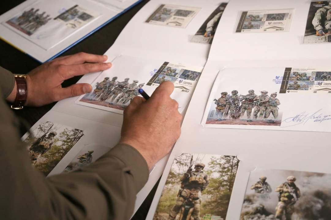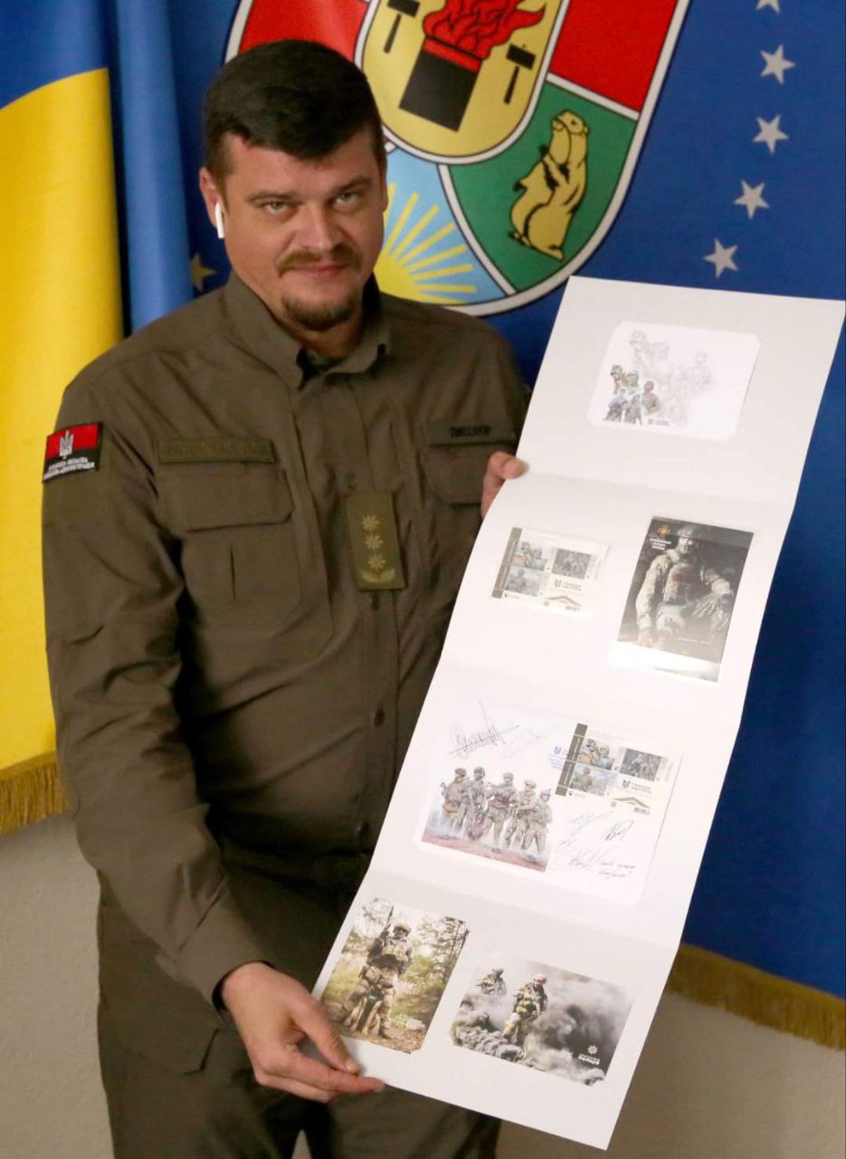 В погашении нового почтового блока "Слава Силам обороны и безопасности Украины! Гвардия наступления" принял участие председатель ЛОВА Артем Лысогор и герои с Луганщины.