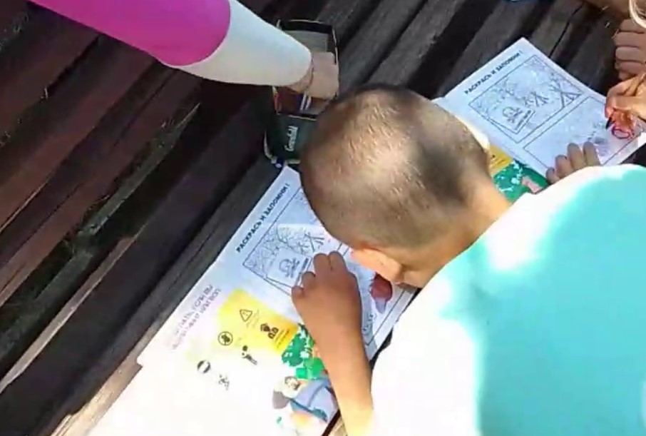 Сам Скорый также "для кадра" играл с детьми, для которых организовали различные конкурсы и развлечения, и помогал создавать картинку "счастливой жизни."