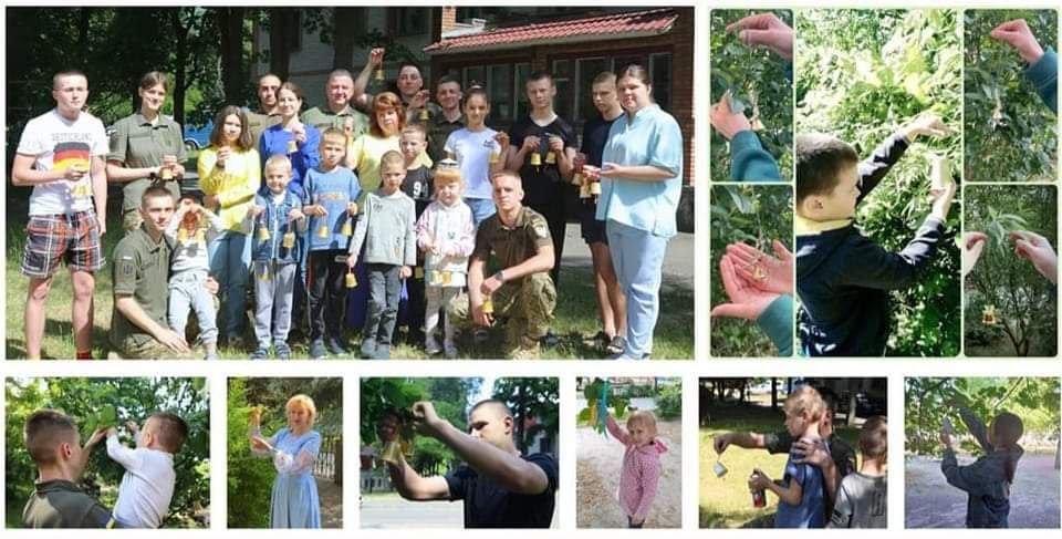 Военнослужащие Военного института телекоммуникаций и информатизации имени Героев Крут вместе с детьми изготовили собственноручно и развесили на деревьях колокольчики, символизирующие голоса убитых Россией детей.