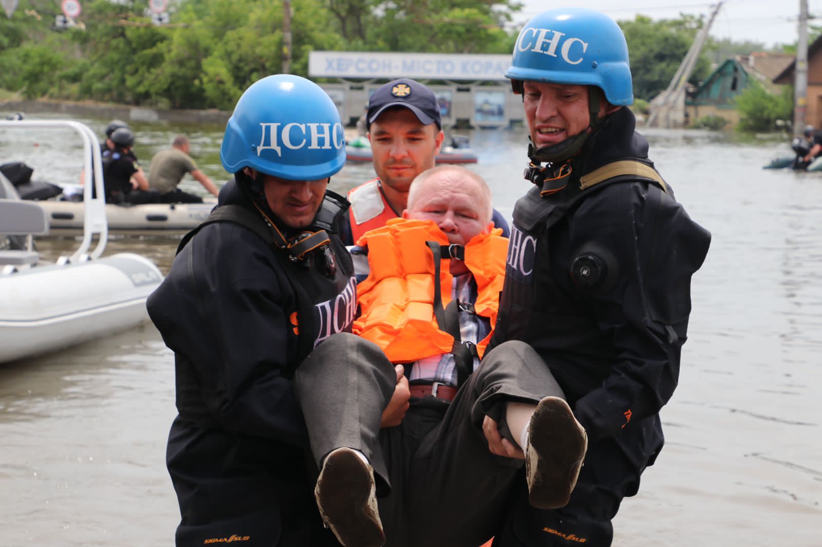 От ГСЧС привлечено 760 человек и 174 ед. техники, из них 47 плавсредств (в т.ч. 5 сводных отрядов ГСЧС). В г. Херсон находится мобильная оперативная группа аппарата ГСЧС и техника повышенной проходимости (5 ед. снегоболотоходов "Богун").