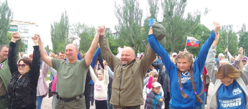 На кадрах, которые опубликовал Telegram-канал "Донбасс оперативный", так называемый "мэр" города Андрей Скорый поздравил лисичан с "праздником".