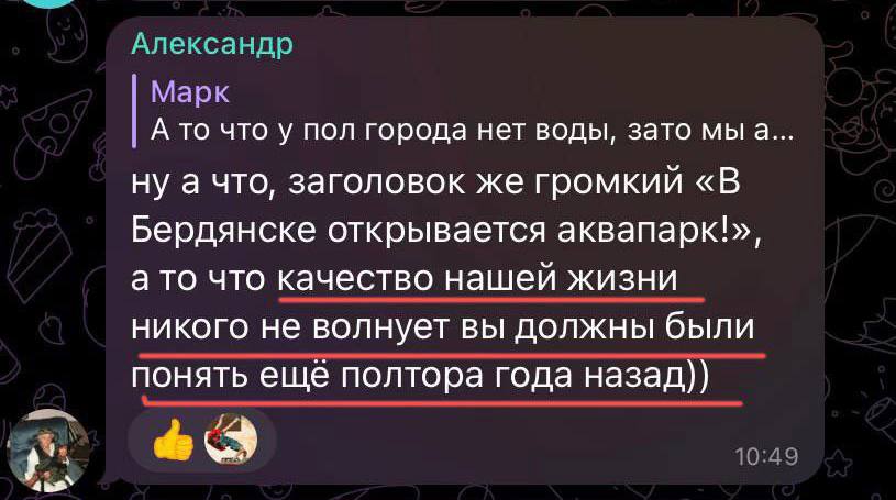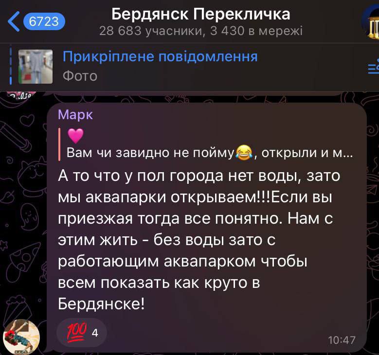 Временно оккупированный Бердянск Запорожской области стал объектом негативного отклика из-за действий российской "власти". С распространением информации о намерениях открыть аквапарк в городе, общество выразило свое решительное возмущение из-за большой проблемы: в городе нет воды.