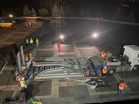 Ко Дню Независимости Украины вместо герба СССР со звездой, серпом и молотом, демонтированным 1 августа, на скульптуре уже будет украинский трезубец.