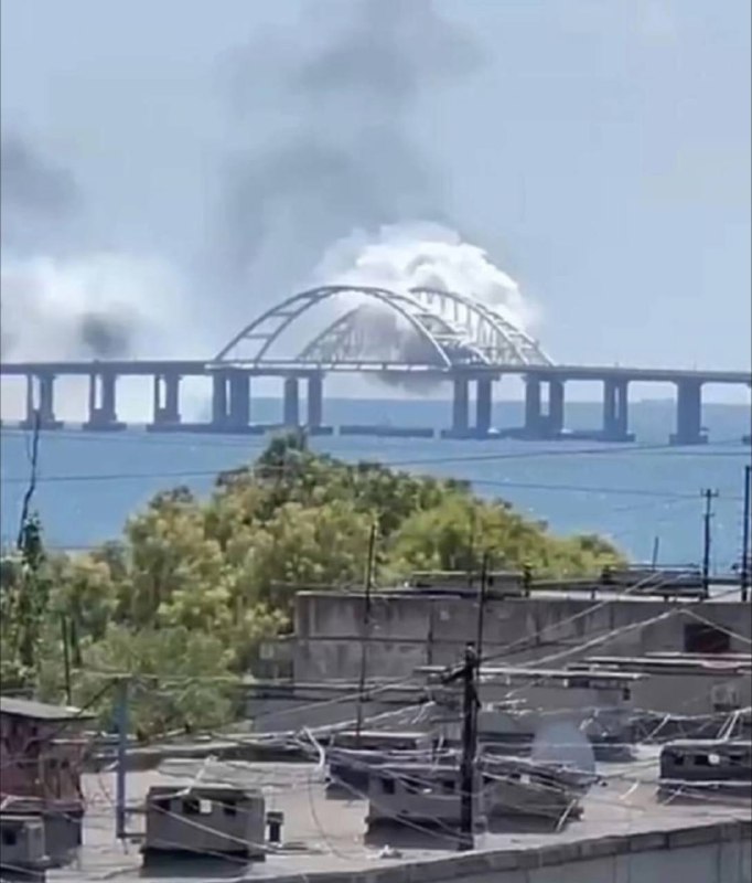Сегодня 12 августа во временно оккупированном Крыму неспокойно. Жители Керчи сообщают о взрывах. Над Керченским мостом поднялся столб белого и черного дыма.