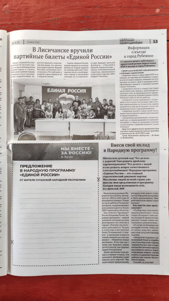 В "освобожденном" треугольнике (Северодонецк, Лисичанск, Рубежное) для сбора "пожеланий" решили воспользоваться "бланками" из местных газет.