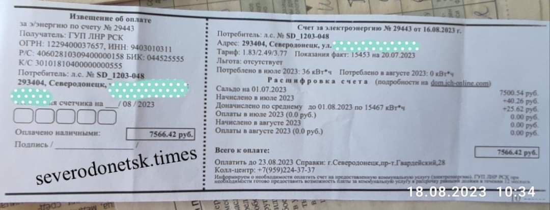 Во временно оккупированном Северодонецке Луганской области местные потребители электроэнергии получают квитанции на оплату, которые в состоянии оплатить не каждый.