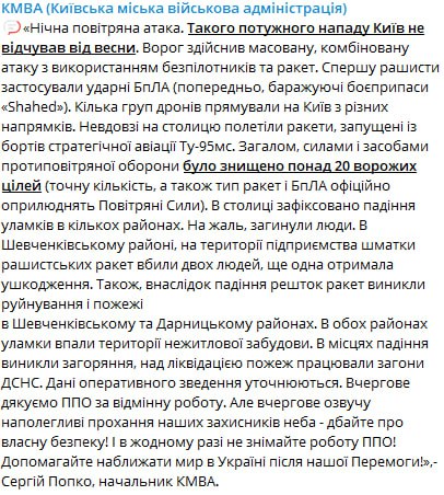 "Такой мощной атаки Киев не ощущал с весны", - пишет КГВА.