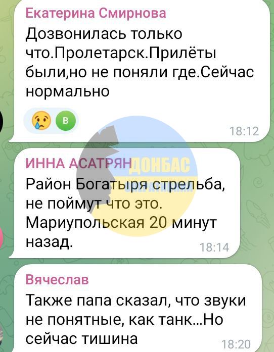В местных пабликах утверждают о том, что прилеты были слышны в Пролетарске. Тем временем жители района Богатыря также сообщают о стрельбе.