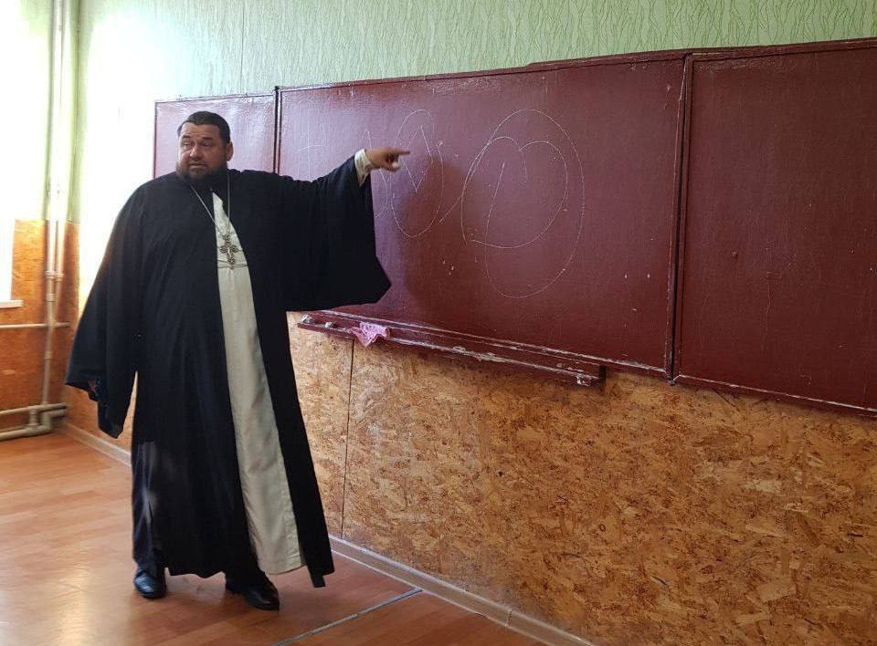 "Атмосферный фотоотчет. О противодействии идеологии терроризма детям рассказывал "СВО-шник". А о духовно-нравственных ценностях - московский поп. Вот она педагогика оккупанта: детям вместо воспитания и обучения продолжают промывать мозги", — подчеркнул он.