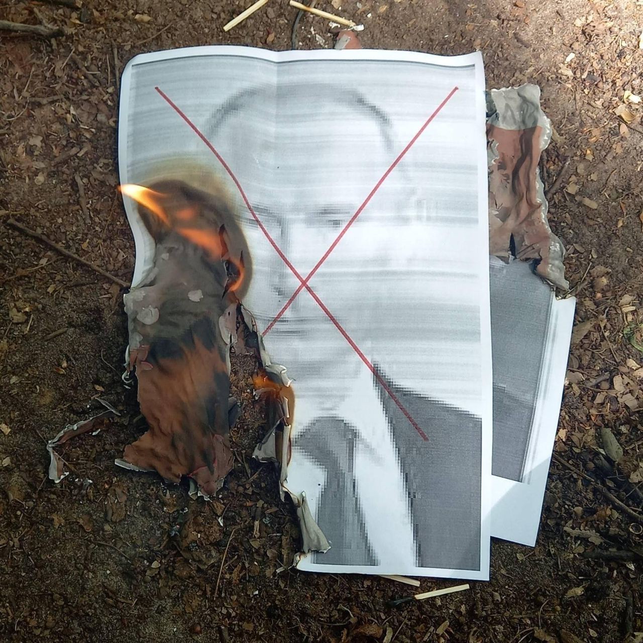На временно оккупированных территориях Луганской и Запорожской областей активисты движения "Желтая лента" сжигают портреты президента РФ.