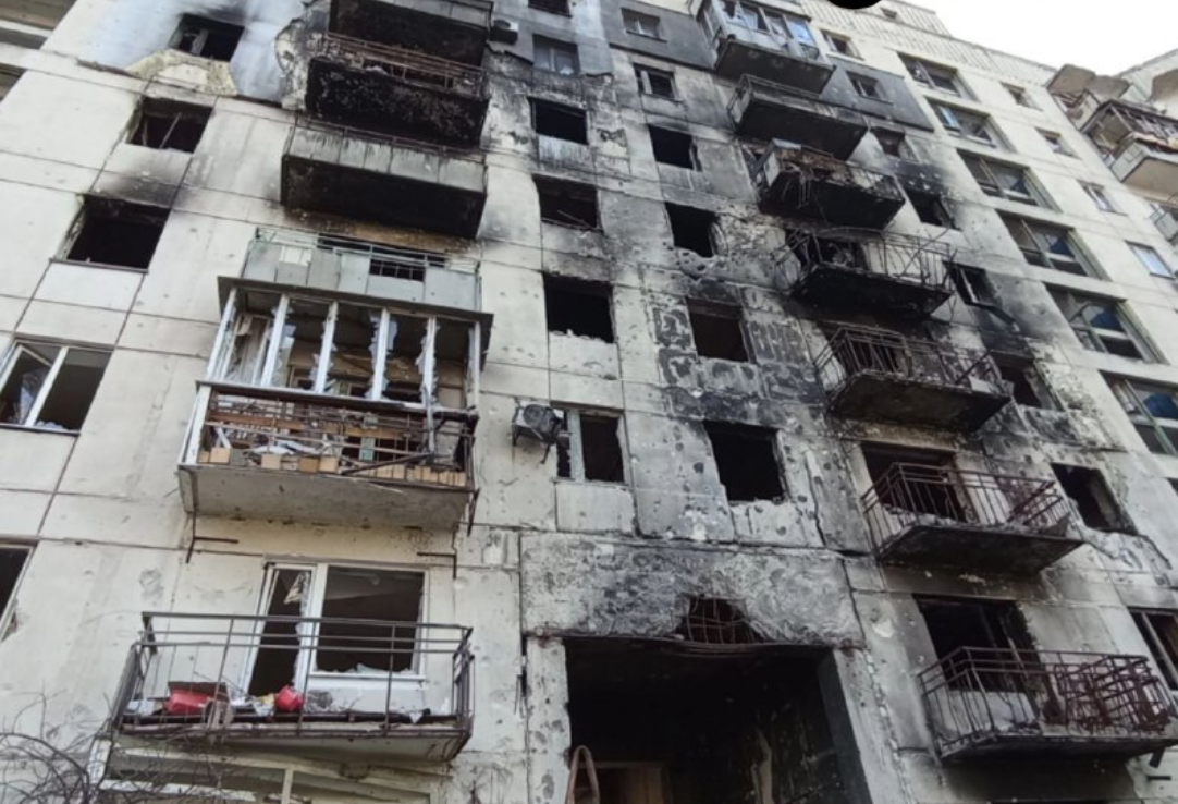На кадрах дом по улице Вилесова, 43. Единственное, что смогли сделать россияне с разрушенными домами – забили окна ДСП.